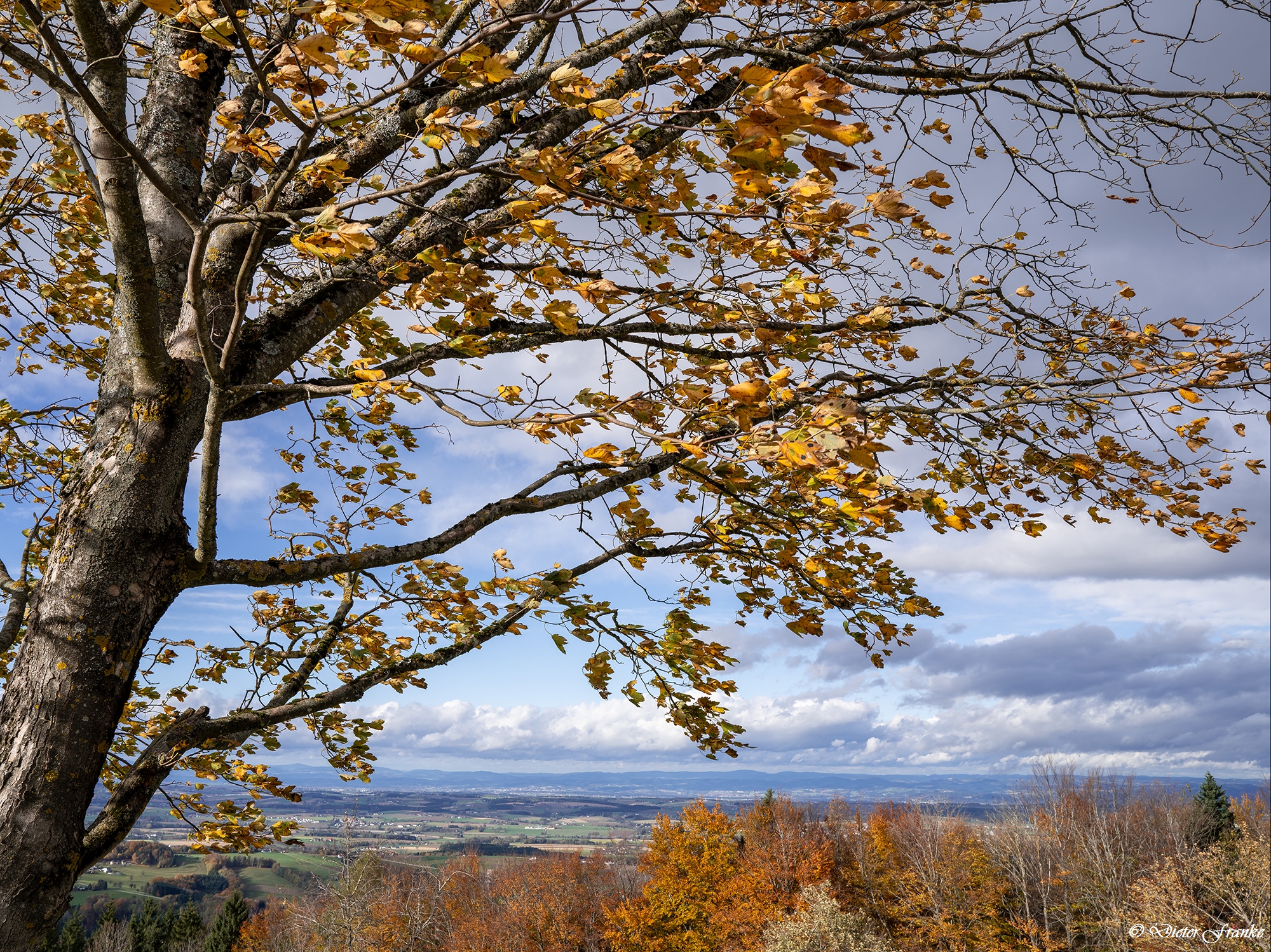 Blick vom Sonntagberg im Mostviertel an einem sehr stürmischen Herbsttag mit weitem Blick nach Norden. Man kann dort irgendwo auch die Donau erahnen. Der Besuch bei Verwandten hat sich doch gelohnt.Herbststurm am Sonntagberg